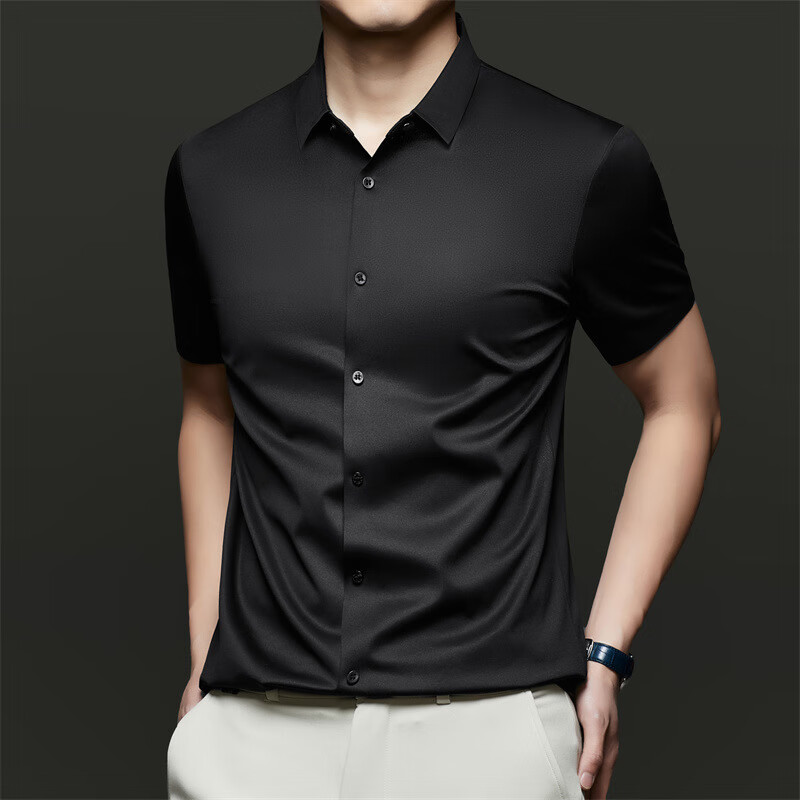 MAYOR男装春季300支棉汉麻桑蚕丝易烫商务蓝条长袖男衬衫 深蓝 38