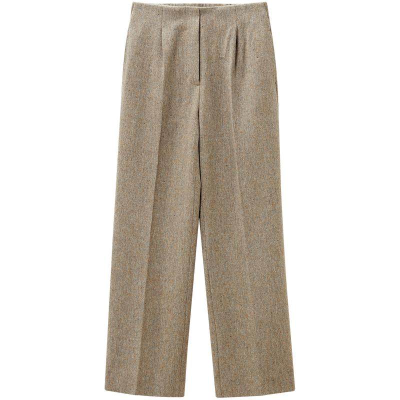 OVV秋冬新款女装日本进口岗花呢面料后腰橡筋直筒休闲裤满910元减254元