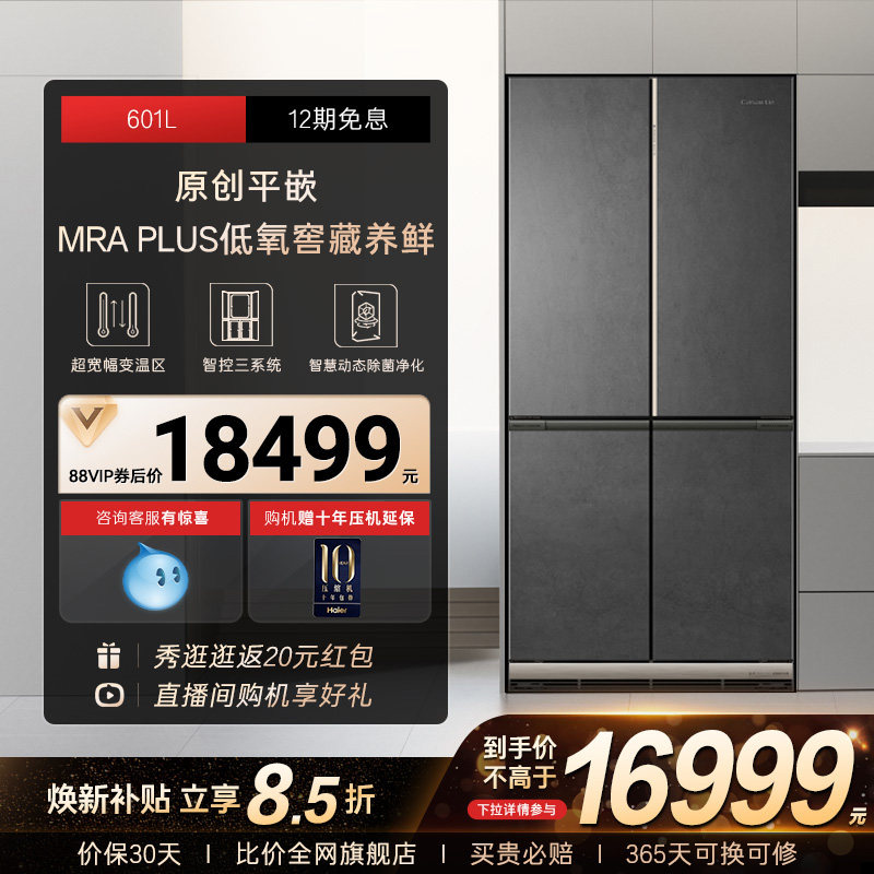 以旧换新卡萨帝601L致境平嵌入式十字门超薄一级风冷无霜家用冰箱