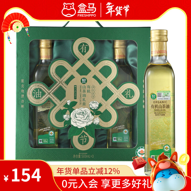 盒马 有机山茶油礼盒 500ml*3瓶 新年年货送礼礼盒 500mL*3瓶 礼盒装