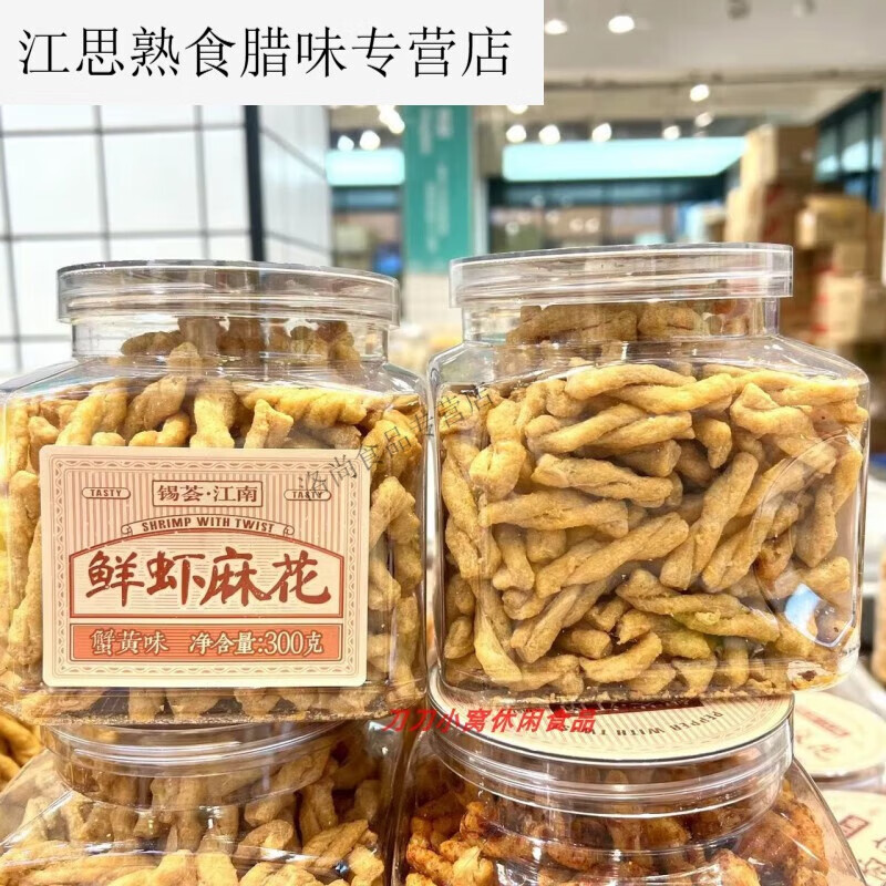 锡荟江南脆香麻花鲜虾甜椒小麻花蟹黄味膨化追剧休闲零食300g 鲜虾麻花蟹黄味*1罐