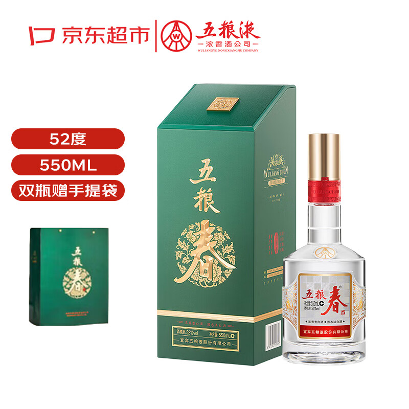五粮液股份 五粮春第二代 菁萃 浓香型白酒 52度 550ml 单瓶装年货送礼