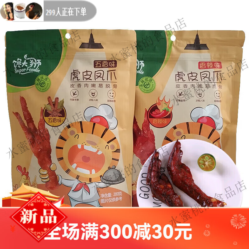 虎皮凤爪五香味200g香辣味鸡爪卤味鸡脚零食真空单个袋装正品保障 馋大狮虎皮凤爪五香味200g*2袋