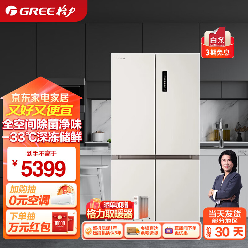 格力(GREE)晶弘冰箱十字对开底部散热可嵌入恒温母婴保鲜节能变频一级能效 BCD-658WGNEK2SPDC ...
