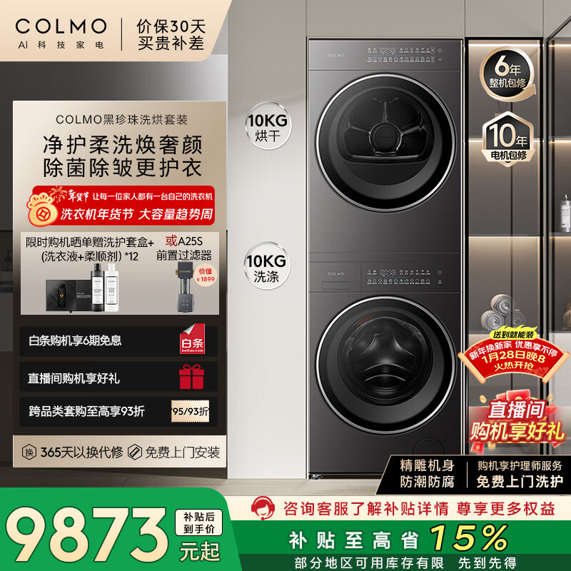 COLMO黑珍珠洗烘套装C3 10KG滚筒洗衣机+热泵烘干机 净护柔洗CGU10H-C3+CHZ10H-C3( ...