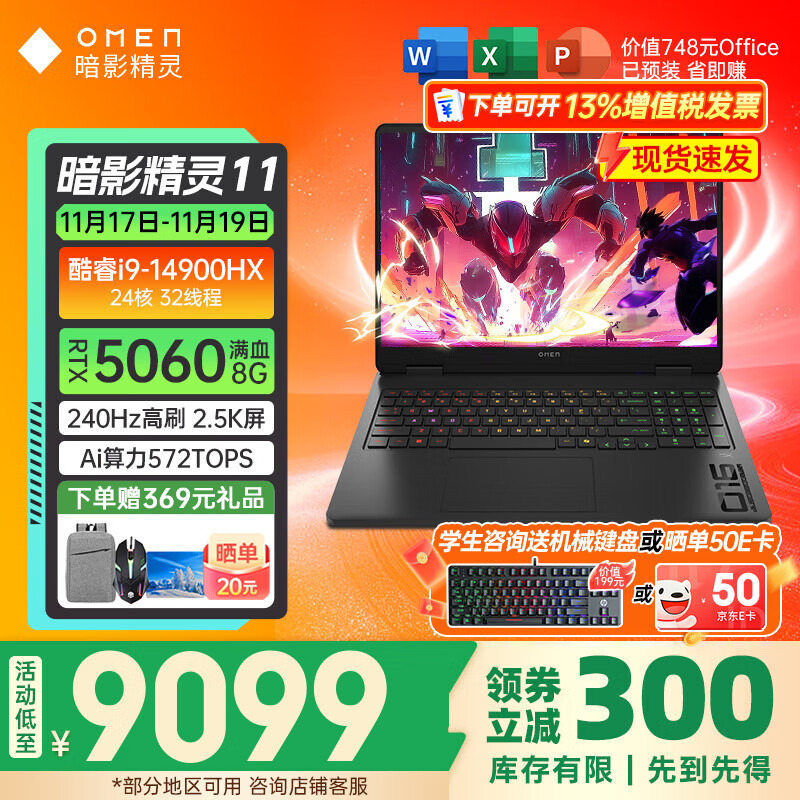 惠普(HP)OMEN暗影精灵11游戏笔记本电脑学生畅玩黑神话悟空吃鸡赛博朋克高端电竞旗舰本 i9-14900H ...
