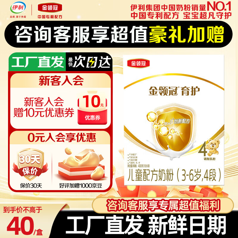伊利金领冠育护4段400g盒装 儿童配方奶粉4段(3-6岁)400g 金领冠 育护4段 400g*1盒