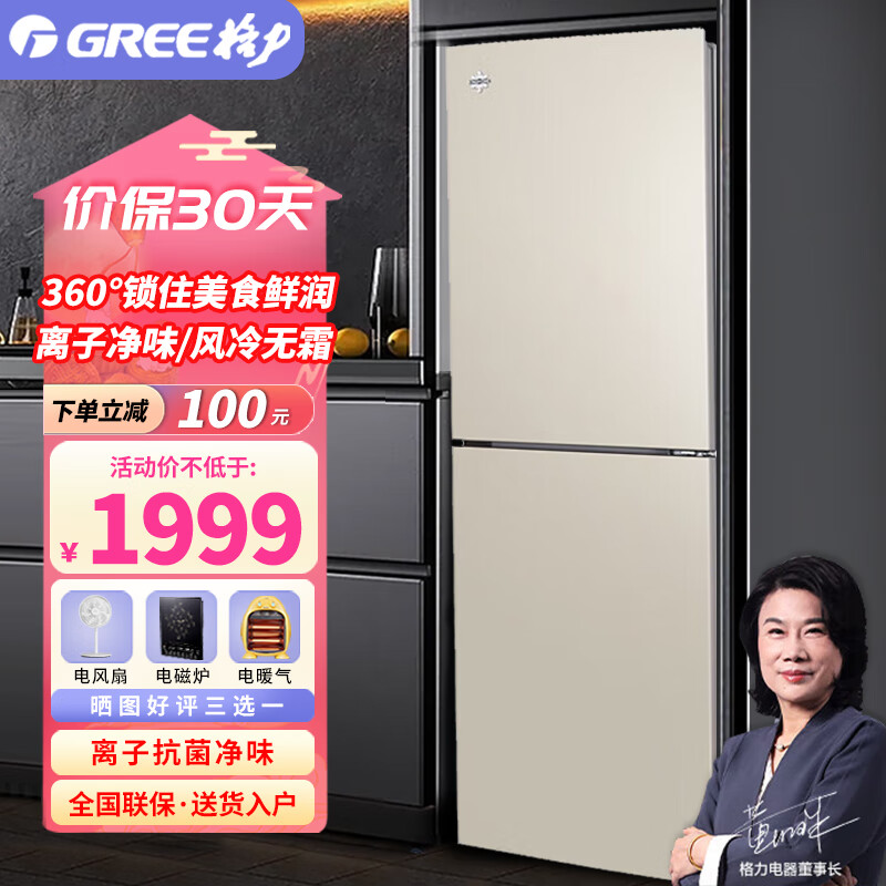 格力(GREE) 晶弘226升家用电冰箱小型快速制冷节能底噪音办公室出租房BCD-226WECL/现代金