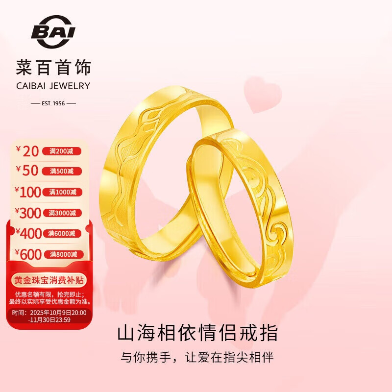 菜百首饰 黄金戒指 足金山海对戒男款(单只)计价 约7.35克