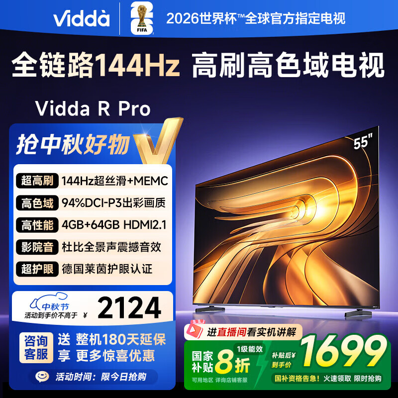 Vidda R Pro 55寸 海信电视 144Hz高刷 4+64G 一级能效 以旧换新家电国家补贴液晶游戏电视机55VR1Q-PRO