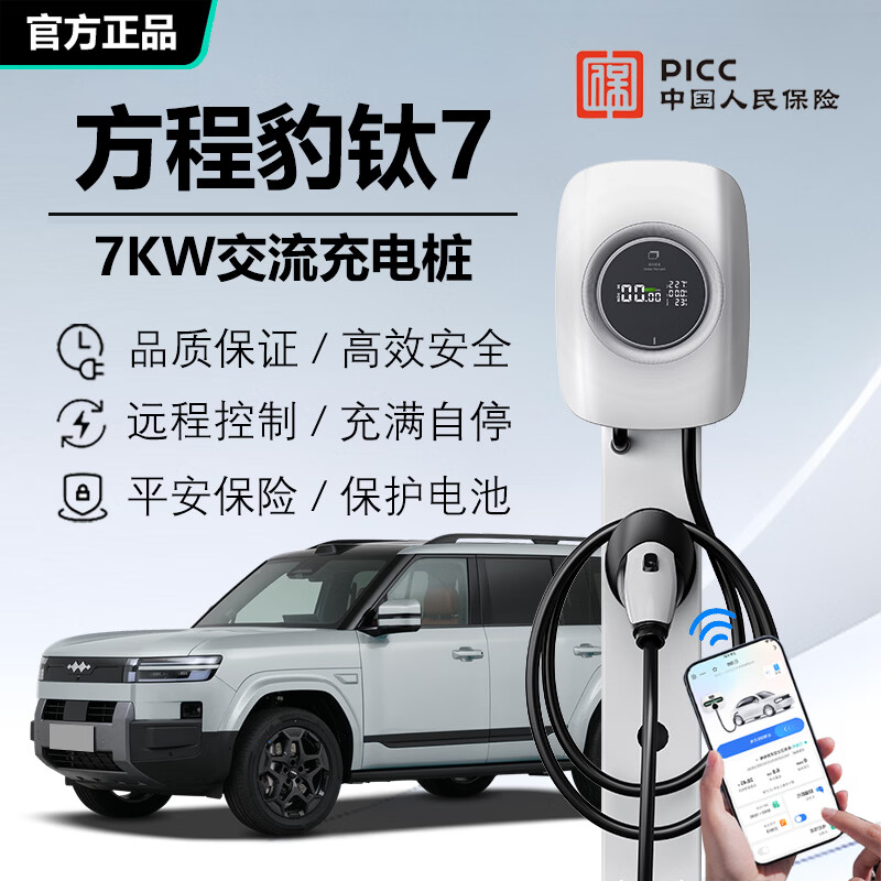 京宝电方程豹充电桩7KW家用原厂充电协议方程豹钛7/钛3/豹5/8专用交流充电桩32A国标220V快充交流充电器 方程豹钛7 【即插即充/指示灯】7KW-5米线