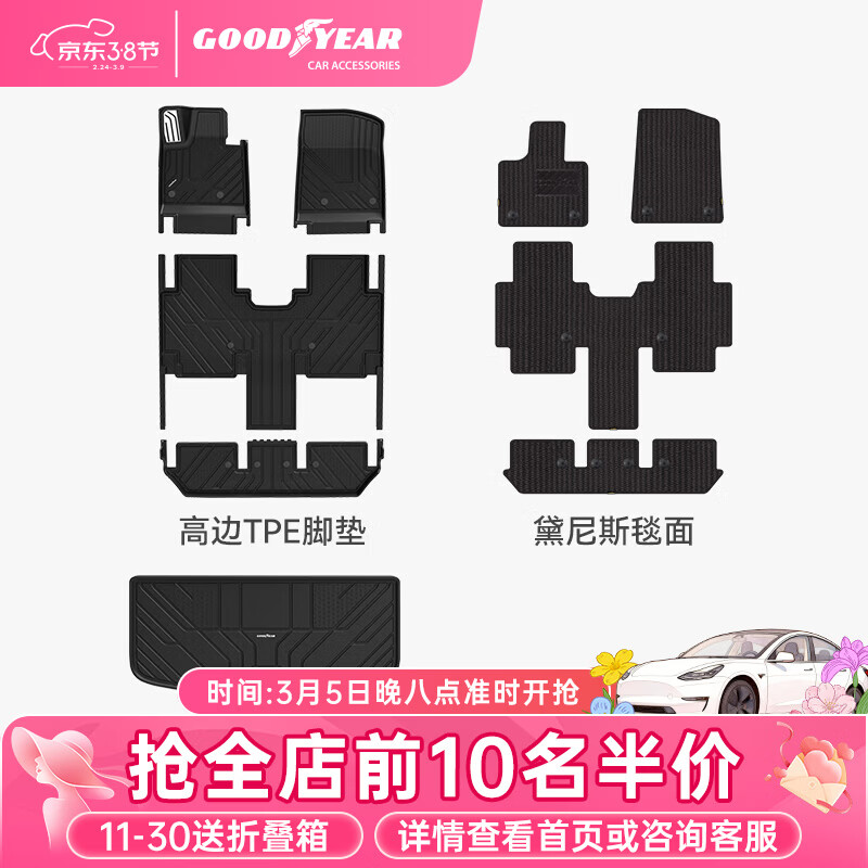 固特异(Goodyear)高边TPE汽车脚垫适用于蔚来乐道L90/L60后备箱垫车垫内饰防护配件 【刚需防护】乐道L90 高边脚垫+黛尼斯 9件套
