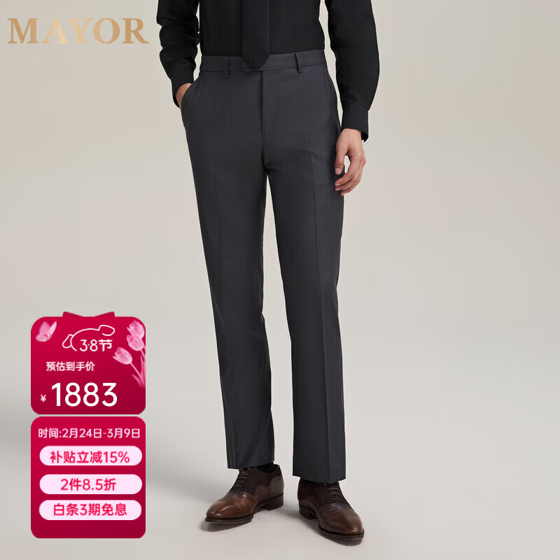 MAYOR男装 春季Loro piana 130支全羊毛斜纹舒适西裤 深灰色 170A (170/78A)